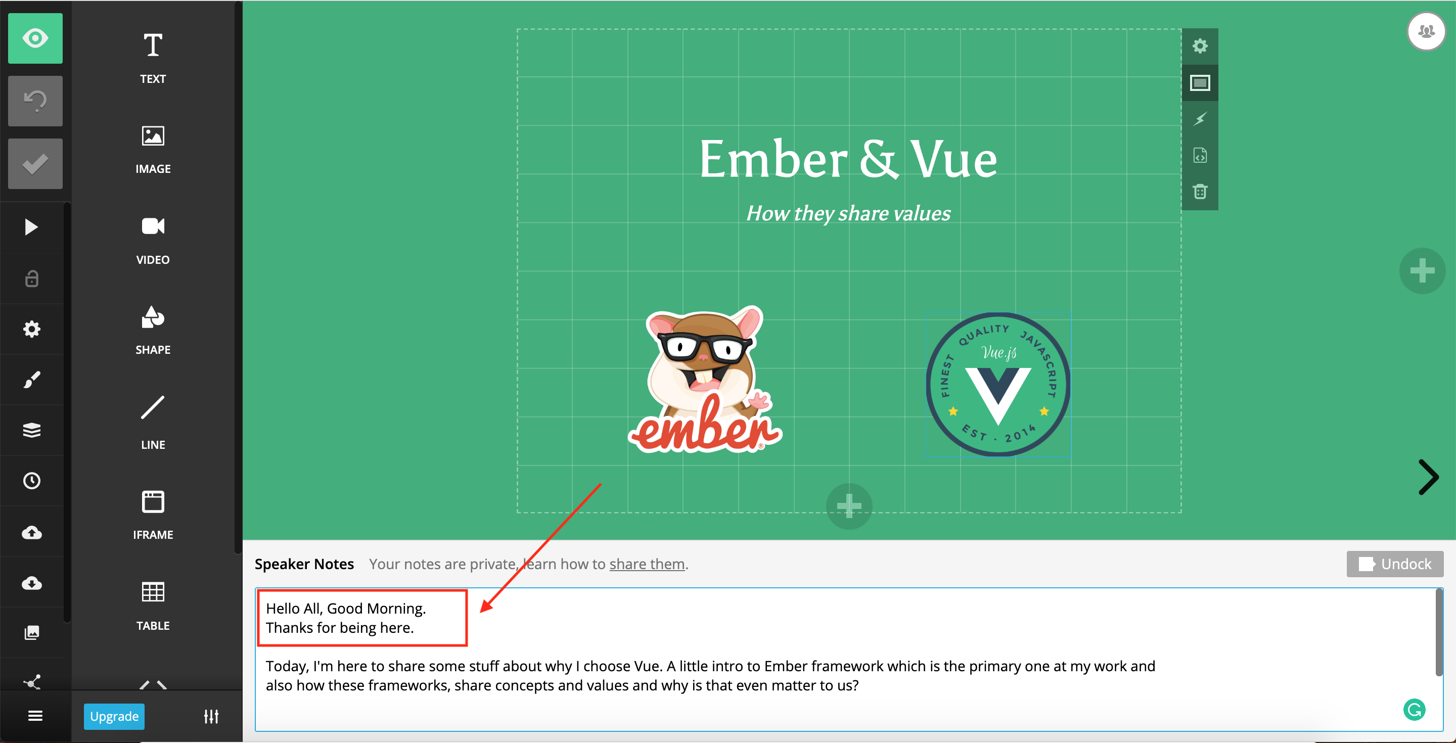 It was about 20 slides and I finish writing extensive notes for all, fairly a week before the conference. Next comes the actual speaking practice. This was the toughest part 😬. First I started to read out the notes loud (locking myself inside my room) to practice the flow. One of my friends, Sivakumar advised me to record the practice talk using QuickTime player or any such tool and re-watch it for improvements. It actually helped me a lot. I recorded about 4 trails and each one helps me to tune my presenting flow. TBH, when looked into the recording, I was terrified the way I read out the points. It was like reciting a poem to my teacher repeating a lot of words again and again and used a lot of “Ahhmm” word between phrases. If I did not do this practice, I can’t imagine how my actual talk would be 😆
